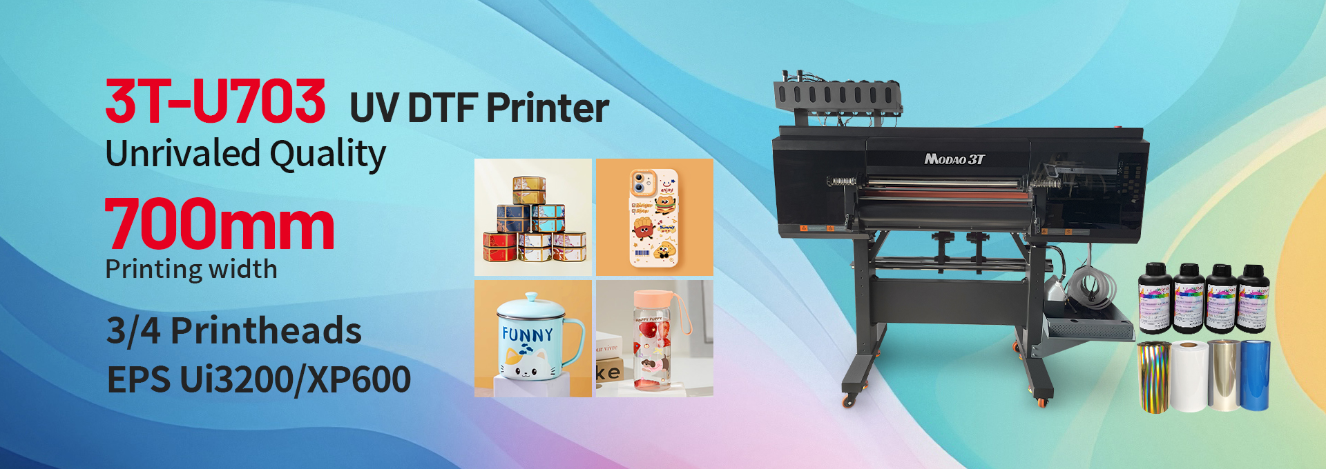 Print head:i3200/i1600Max print width: 650mmPrinter film: AB filmPrinterink: uvink;Product Application:Suitable for harder material surfaces such as plastic, acrylic, glass,ceramics, and metal.